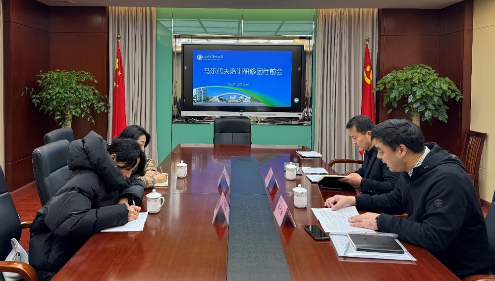 12月12日上午,学校举行赴马尔代夫执行中文教师项目行前教育会议。校党委委员、副校长花军,国际交流合作处处长孙志林及相关老师参加了会议。