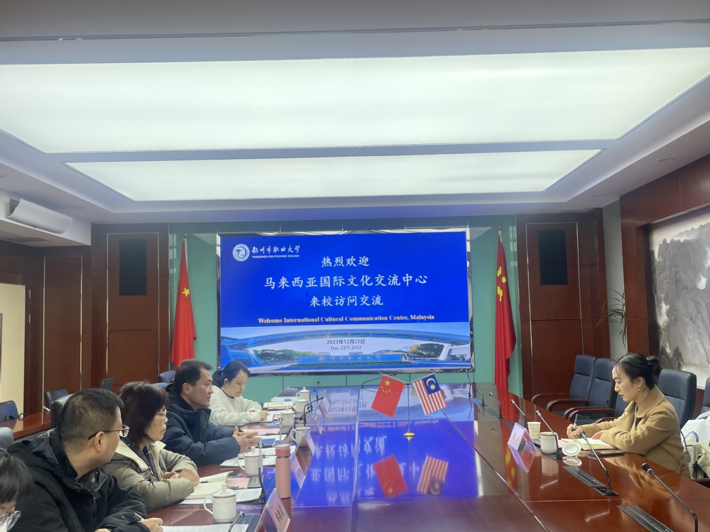 周晋对我校的热情接待表示了感谢,并详细介绍了马来西亚国际文化交流中心的发展历史、业务范围、国际合作等情况,重点介绍了其在境外办学、专业标准输出等方面的资源和案例,并表示愿以此次交流为契机,充分发挥双方资源优势,积极探索职业教育国际合作新路径。