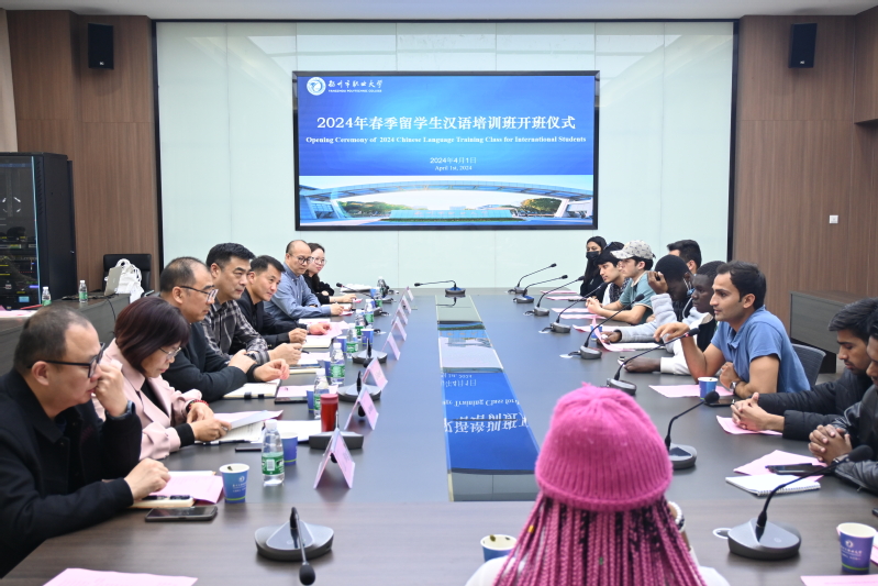 近日,国际交流学院在学校科技综合楼304会议室举行2024年度春季留学生汉语培训班开班仪式。学校党委委员、副校长花军,国际交流合作处、后勤管理处、保卫处、学生工作部、国际交流学院等相关学院、部门负责人及来自9个国家的13位留学生参加会议。会议由国际交流学院党总支书记陈峰主持。