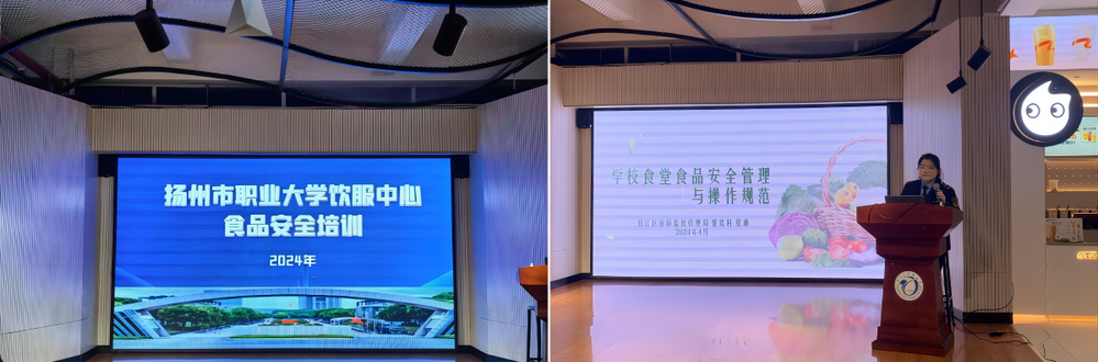 为切实加强校园食品安全,贯彻高校食堂食品安全管理要求,增强食堂从业人员食品卫生安全责任意识,4月12日,学校邀请邗江区市场监督管理局餐饮科科长夏雨,对我校食堂从业人员进行食品安全管理与操作规范专项培训,学校食品安全总监、食品安全员、各餐饮公司负责人和食品加工从业人员共100余人参加了培训。