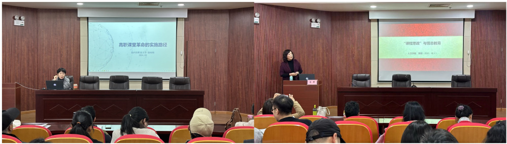 试点项目前期储咏梅教授和郑群教授为大家作《高职课堂革命的实施路径》和《“课程思政”与情志教育》专题讲座。《高职课堂革命的实施路径》讲座主要聚焦于高等职业教育课堂的改革与创新,旨在通过转变传统的教学观念,创新教学方式,完善评价体系等方式,让课堂革命成为观念、技术和行动的革命,推动高职课堂的全面升级。《“课程思政”与情智教育》讲座强调了专业教学与立德树人的渗透性、浸润性和无违和感的融合,通过深入探讨“课程思政”与情智教育在教育教学中的实际应用,助力教师高质量践行“课程思政”,通过夯实课程思政“基础线”,构建课程思政“示范线”,打造课程思政“引领线”,帮助学生实现专业学习的科学价值、人文价值与思政素养的有效统一。
