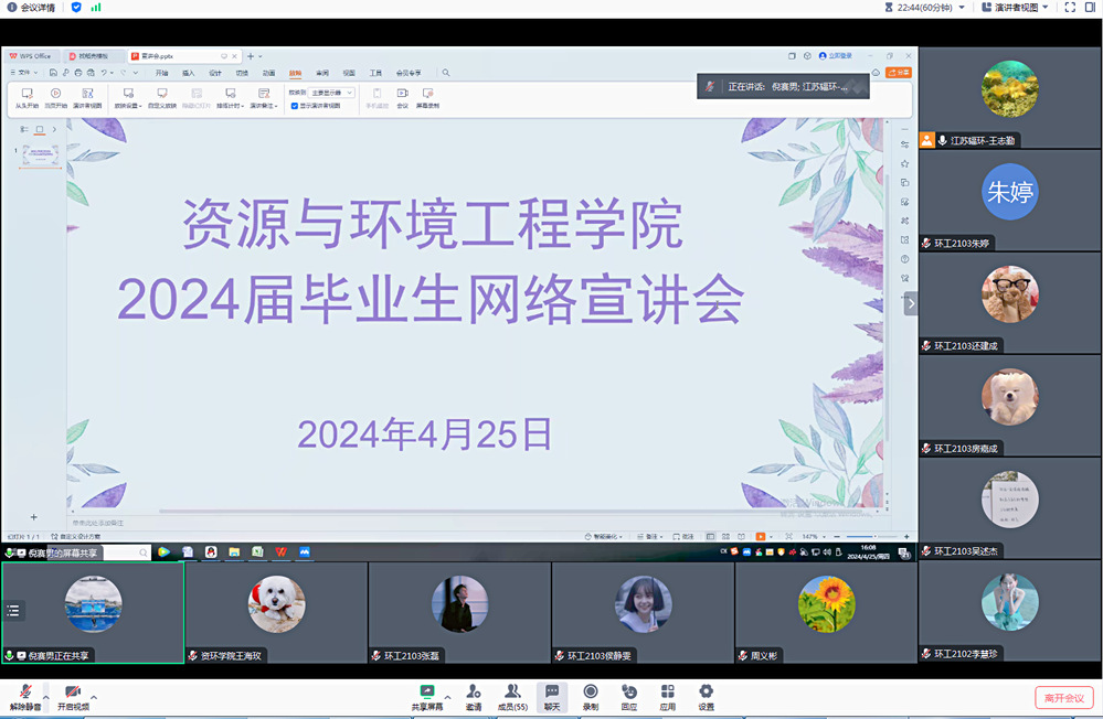 4月25日,资环学院携手江苏通凯环保科技有限公司举办环境工程专业网络宣讲会。学院党总支书记王海玫,学工办全体人员,环境工程技术专业班主任及部分2024届毕业生近100人参加了活动。