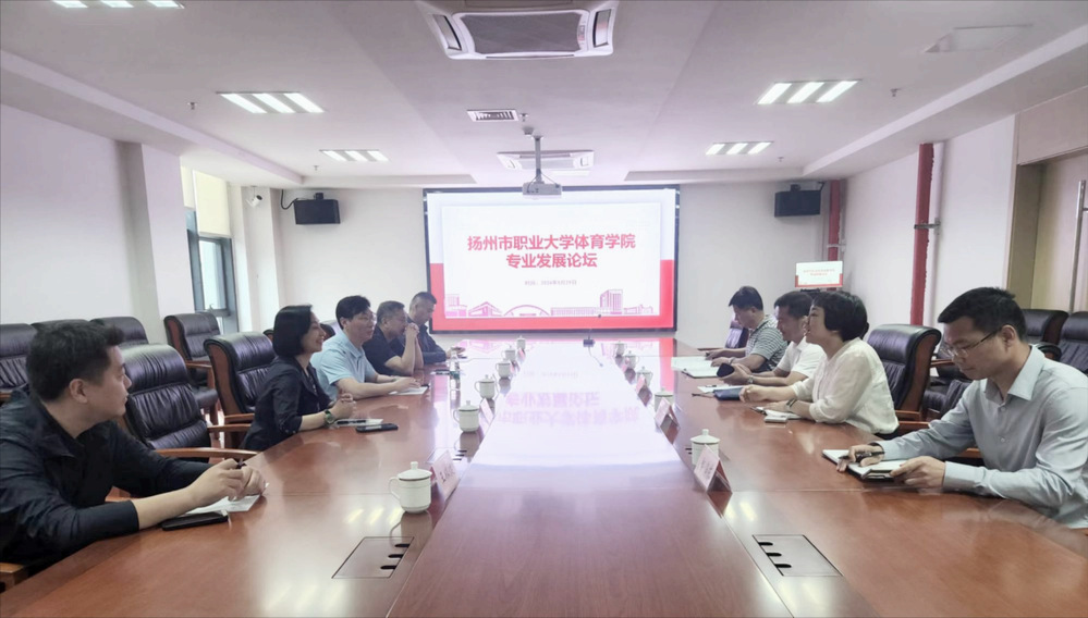 为深化教育教学改革,构建科学合理的人才培养体系,创新人才培养模式,5月29日下午,体育学院在体育馆一楼会议室召开专业发展论坛。活动邀请了南京晓庄学院体育学院院长张伟,江苏省高职高专体育教学委员会主任、南京信息职业技术学院体育部主任梁培根,扬州大学体育学院教授陈晓莺,扬州市体育产业商会会长张燕,南京大学出版社体育选题编辑王以健等专家学者。校党委委员、副校长花军,学院领导班子参加会议,学院党总支书记王淼主持此次会议。