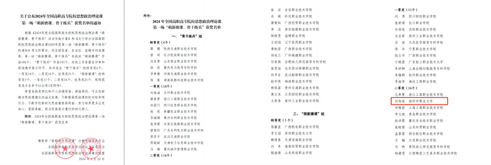 近日,2024年全国高职高专院校思想政治理论课第一场“萌新磨课、骨干练兵”比赛落下帷幕。经过层层选拔和激烈角逐,我校马克思主义学院教师刘旭冉荣获全国“萌新磨课”组二等奖的好成绩。