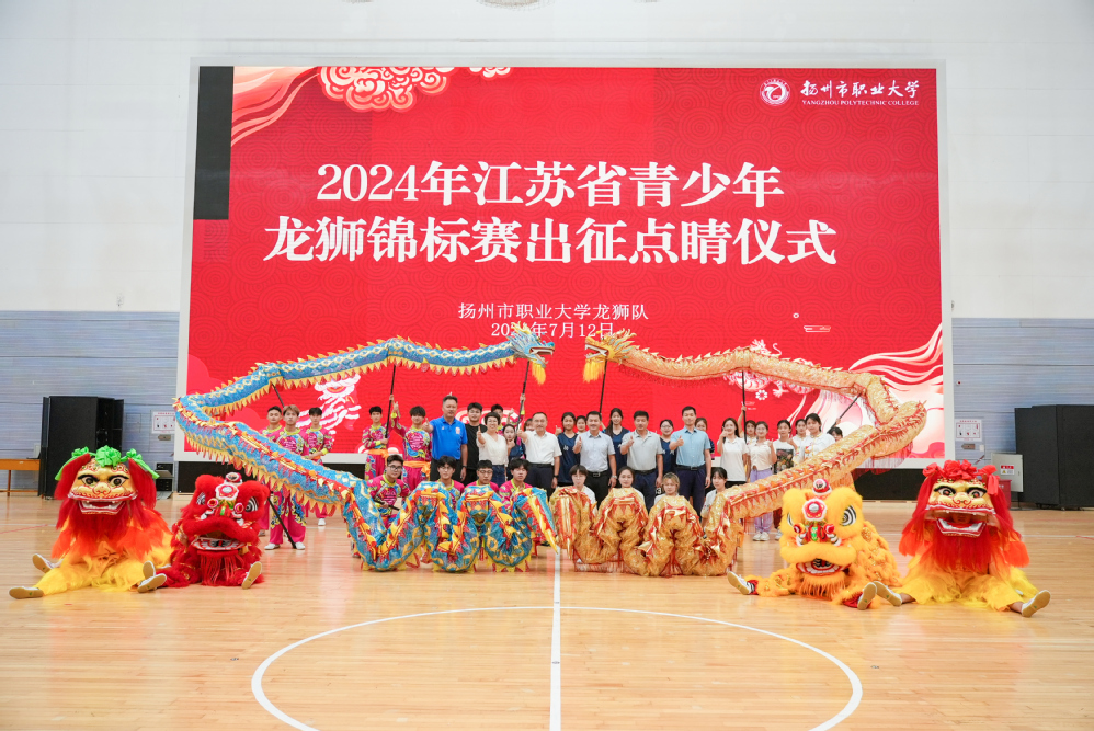 为迎战2024年江苏省青少年龙狮锦标赛,鼓舞龙狮队的士气,7月12日,我校龙狮队在体育馆举行2024年江苏省青少年龙狮锦标赛出征点睛仪式,校党委副书记陈亚鸿,校党委委员、副校长花军,体育学院党政班子及龙狮队全体教练员、运动员共同参加点睛出征仪式。