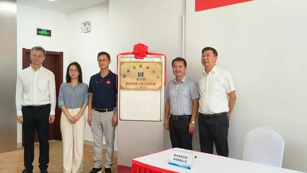 近日,我校与扬州佑瓴文旅科技有限公司和我的宇宙(扬州)科技有限公司创新创业示范实训基地签约揭牌仪式在我的宇宙(扬州)科技有限公司举行。校党委委员、副校长花军,邗江区文旅局副局长周华坤,双桥街道常务副主任卢青以及信息工程学院等学院、部门相关负责人参加了活动。