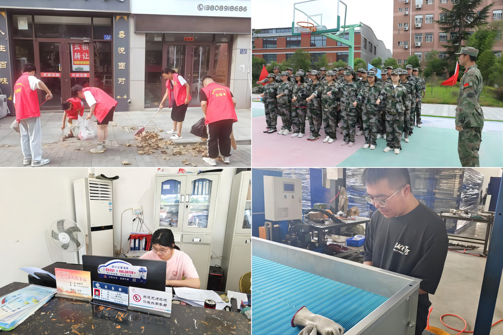 发挥自身优势,绽放青春力量。“迷彩绿”实践团队由退役大学生组成,他们始终秉持“退役不退志,退伍不褪色”的初心本色,协助地方征兵宣传、入伍青年体检、新生军训等工作事宜。“立正、稍息、跨立、齐步走等看似简单的训练内容,既培养了学生吃苦耐劳的精神,又培养了新同学之间的团队意识。每一个动作都需要细致讲解、示范到位......”电气2201班王功臣娓娓道来,今年暑假他再次走进高中担任新生的军训教官,他以身作则,充分展现出严明的组织纪律和过硬的专业素养。此外,不少学生秉持“技能报国”初心,立足专业,走进企业,了解行业,实习实践。