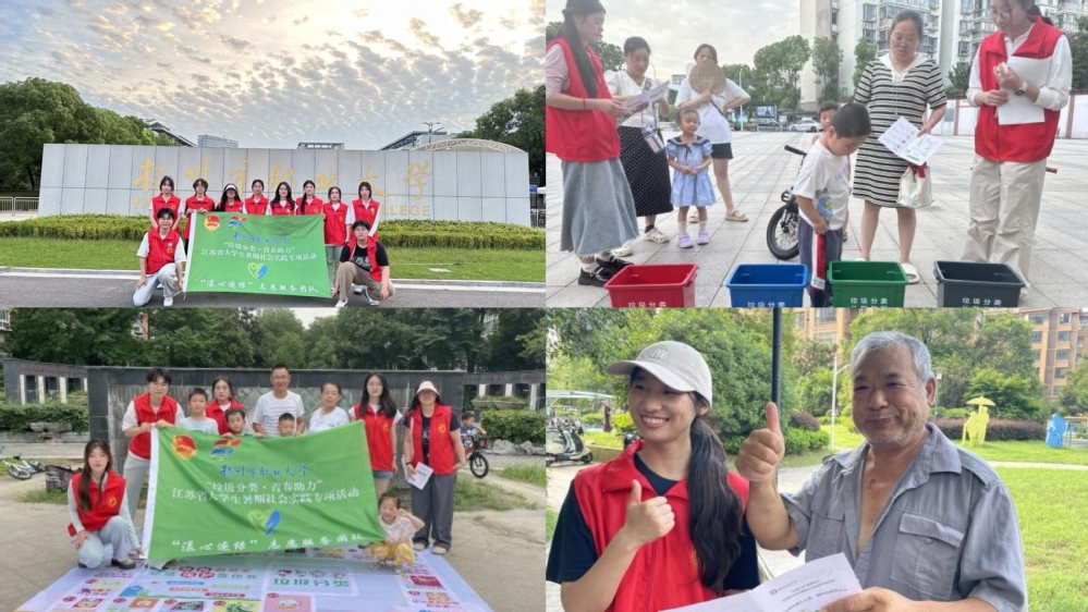 今年六月,生物与化工工程学院成立了“漾心逐绿”志愿服务队,队员们利用暑期空闲开展社会实践,采用“集中+分散”两种形式,跨越扬州、苏州、连云港三座城市,走进多个小区,采用现状调研、宣传教育、体验活动等多种途径传承绿色环保理念。该团队入选2024年“垃圾分类·青春助力”江苏大学生暑期社会实践专项活动。