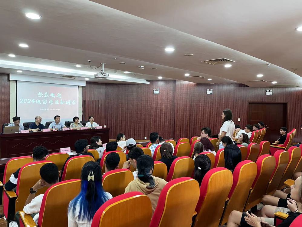 9月9日上午,2024年秋季学期留学生新生入学见面会在图书馆一楼报告厅举行。校党委委员、副校长花军,国际交流学院领导班子和相关教师以及来自14个国家的53位留学生新生参加了见面会。