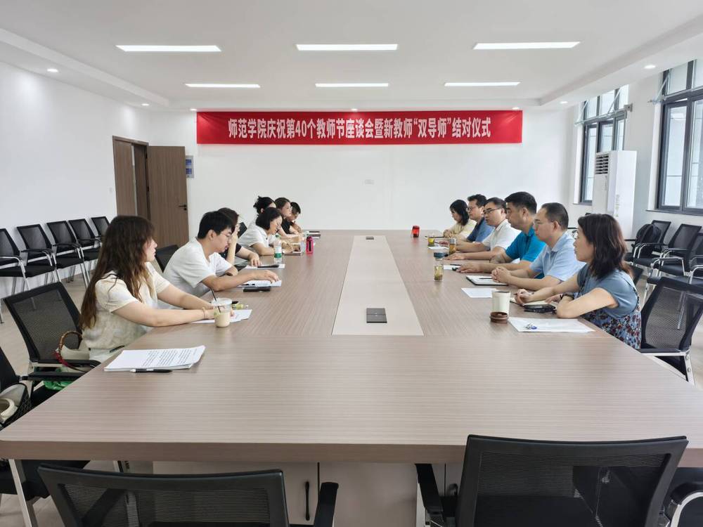 为庆祝第40个教师节,9月10日上午,师范学院在高邮湖校区学院会议室举行庆祝教师节座谈会暨新教师“双导师”结对仪式。活动仪式由学院院长厉爱民主持,学院领导班子成员、各部门负责人、新入职教师和部分教师代表共同参加活动。