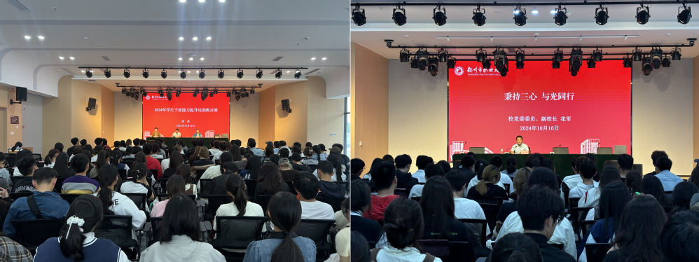 为进一步增强学生干部的责任意识、服务意识,增强学生干部队伍的凝聚力、战斗力,10月16日下午,高邮湖校区2024年学生干部能力提升培训班在高邮湖校区多功能厅举行开班仪式。校党委委员、副校长花军,校团委、高邮湖校区各学院团委老师及新生学生干部参加了活动。
