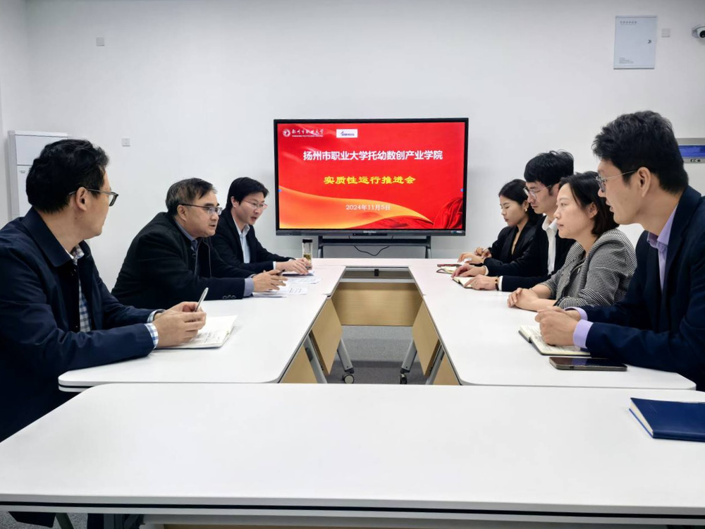 11月5日,托幼数创产业学院实质性运行推进会在高邮湖校区举行。此次会议围绕产业学院实质性运行项目清单展开工作,并明确了未来的具体目标与行动方案,同时落实了产业学院双院长负责制。师范学院党总支书记石继华、院长厉爱民,产业学院合作方领鹿教育总裁沈晓梅等参加会议。