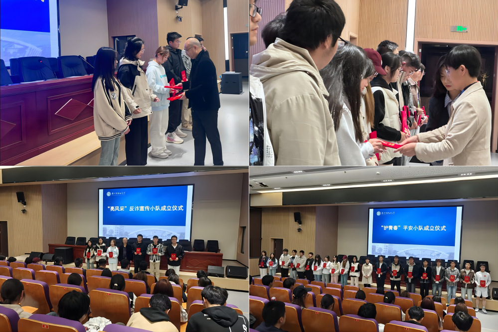 会上,吴振慧回顾了近年来学院安全稳定工作取得的成绩和存在的问题,叮嘱同学们要绷好安全这根弦,增强自我管理意识。她表示,安全工作小队是学院安全保障力量的重要补充,要坚持发挥小队主动作用、强化过程管理,将安全隐患遏制在萌芽状态,确保学生安全、学院安全。陈久安分析了当前学院安全工作状况,说明新时代安全工作的重要性,指出“护青春”平安小队、“亮风采”反诈宣传小队的成立对于学院安全工作的意义。他希望小分队成员勇担责任和使命,深入学生中以灵活快捷的方式开展工作,突出安全工作成效,在守护平安校园中绽放青春风采。
