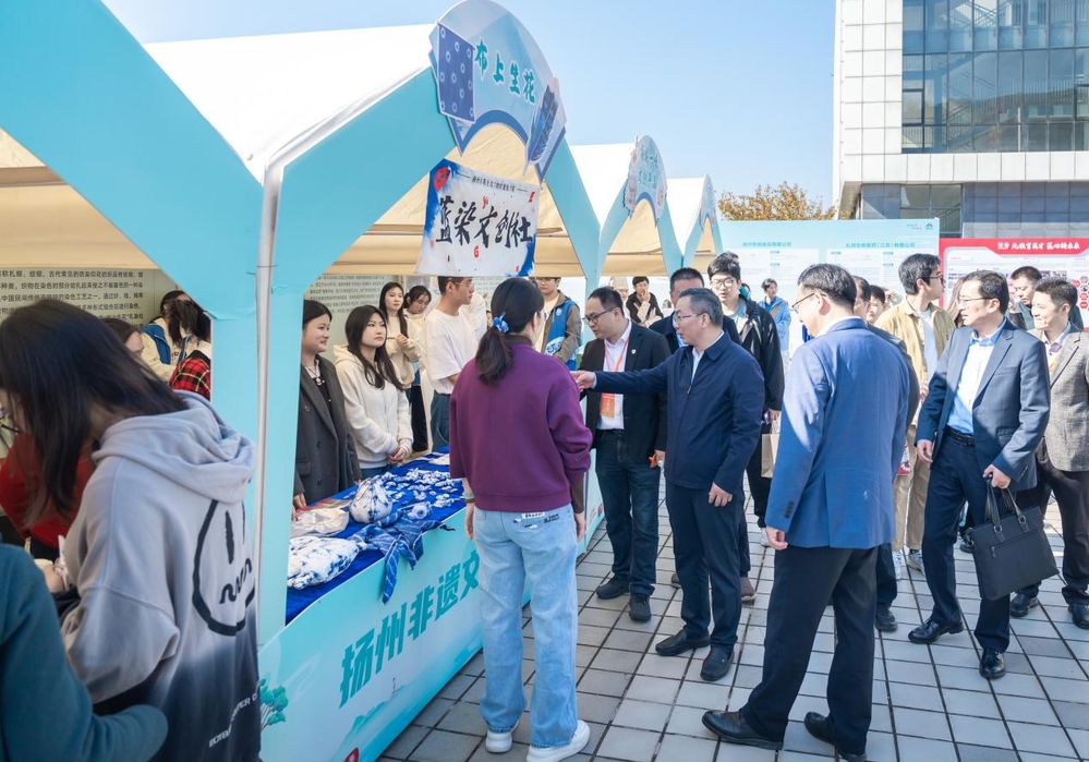 11月10日上午,由扬州市人民政府主办的2024年扬州人才校园日活动在南京医科大学开幕。此次活动旨在深度展示扬州的创新创业生态,诚邀广大青年学子走近扬州、青睐扬州、并在扬州生根发芽。我校纺织服装学院“蓝染文创社”获邀参加活动。