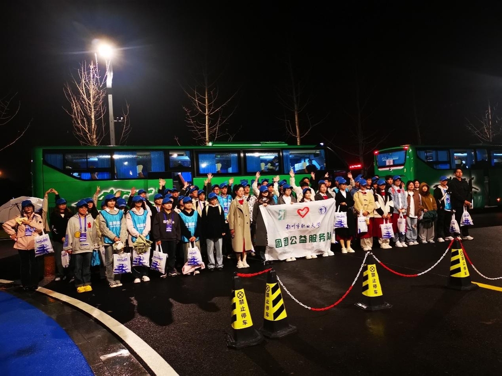 11月10日清晨,高邮湖校区灯火通明,寒冷的秋雨熄灭不了同学们的热情,参加2024年扬州高邮大运河半程马拉松志愿服务的同学们正在有序集结,乘车前往服务一线。