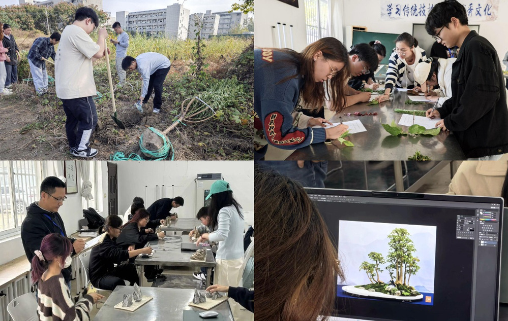 盆景师考核同样要求严格且极具专业性,49名学生分组竞技,考核内容涉及理论知识、树木盆景造型识别阐述、小型立山式山水盆景精心制作以及盆景配件合理选择搭配等。例如,在山水盆景创作中,学生需精确锯截石材、巧妙组合布局,通过艺术手法营造出独特的意境美感,这不仅考验学生的手工技艺,更对其艺术感知与审美修养提出了较高要求。