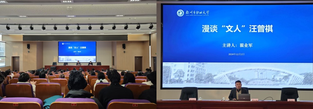 12月2日下午,在高邮湖校区图文信息中心报告厅举办了首期人文讲座《漫谈“文人”汪曾祺》。浙江大学文学院教授、博士生导师、我校优秀校友翟业军先生作为主讲嘉宾,师范学院院长厉爱民主持讲座。