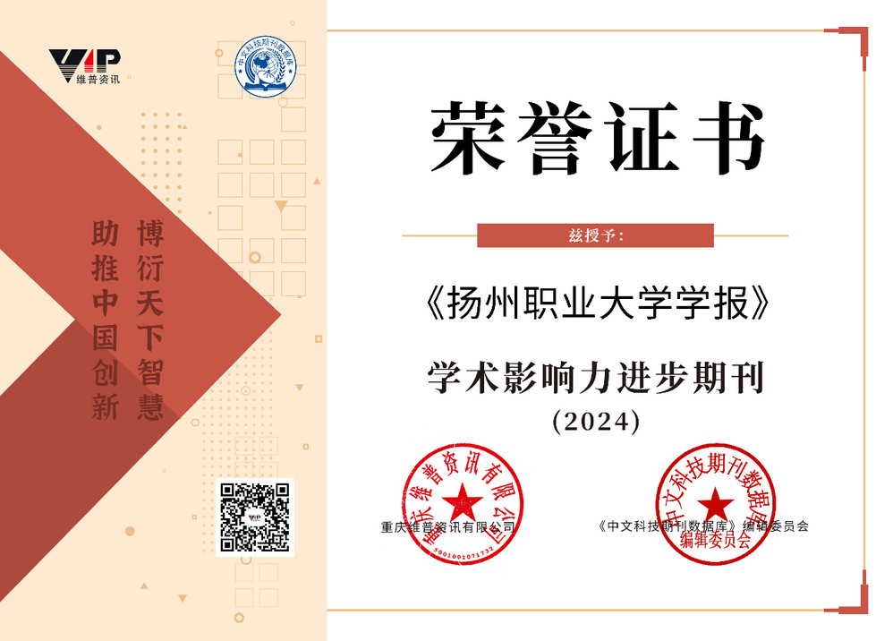 12月19日,我校《扬州职业大学学报》获得维普《中国科技期刊数据库》编辑委员会授予的“学术影响力进步期刊”荣誉证书。该奖项在所有纳入范围的7039种来源期刊中分学科进行统计,是本刊创刊以来取得的新突破。