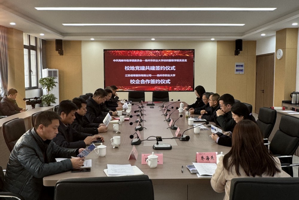 为更好地服务地方高质量发展,做好党建引领校地合作、校企合作工作,近日,纺服学院党总支与高邮市临泽镇党委“党建共建”签约仪式在高邮湖校区管委会举行,开启“校地共建、资源共享、优势互补、注重实效”新篇章。高邮市副市长周启泉,校党委副书记、高邮湖校区管委会主任陈亚鸿,党委委员、副校长、高邮湖校区管委会副主任黄瑞,高邮市政府办副主任王学朴、高邮市电子政务中心副主任蒋琪勇,临泽镇党委书记冯长征、镇长钱向前、党委副书记相彪、党委组织委员丁勇,纺织服装学院班子成员参加活动。签约仪式由纺服学院副院长佘步颖主持。