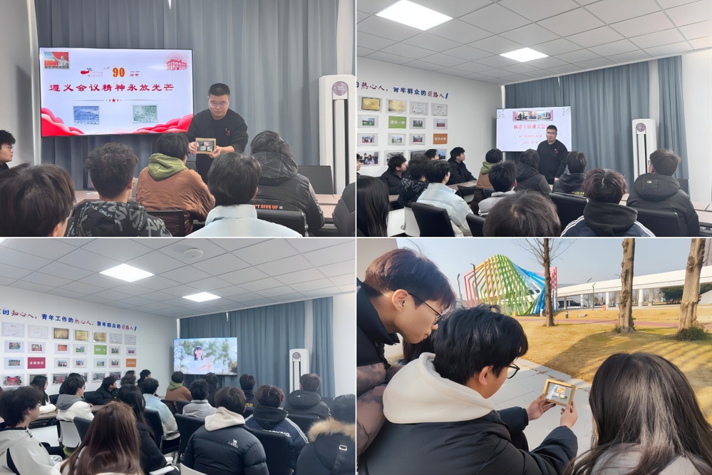 在遵义会议召开90周年纪念日到来之际,电子工程学院学工党支部书记杨一斌在高邮湖校区4号宿舍楼一站式学生社区D103室、瘦西湖校区图书馆903会议室以毛泽东的《忆秦娥·娄山关》的朗诵开启了《邮票上的遵义会议》党课主讲。学院全体党员干部、入党积极分子以及学生干部100多人聆听了党课。