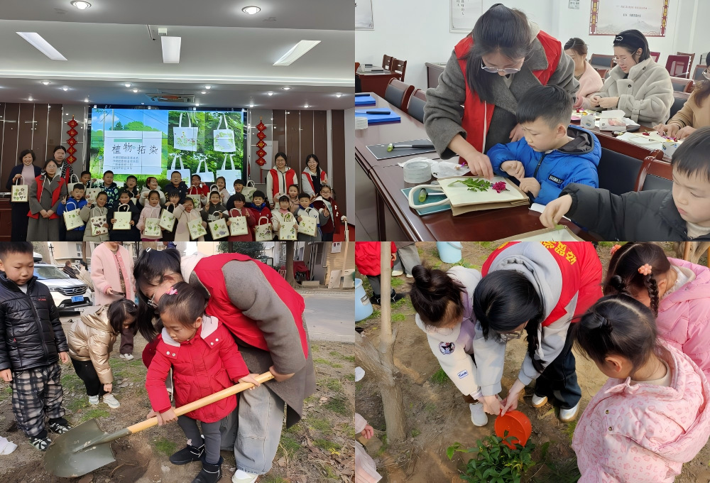 3月11日,经贸学院携手天顺花园社区、广陵新城幼儿园共同开展了一场别开生面的植物拓染活动,并一同种下了希望的树苗。
